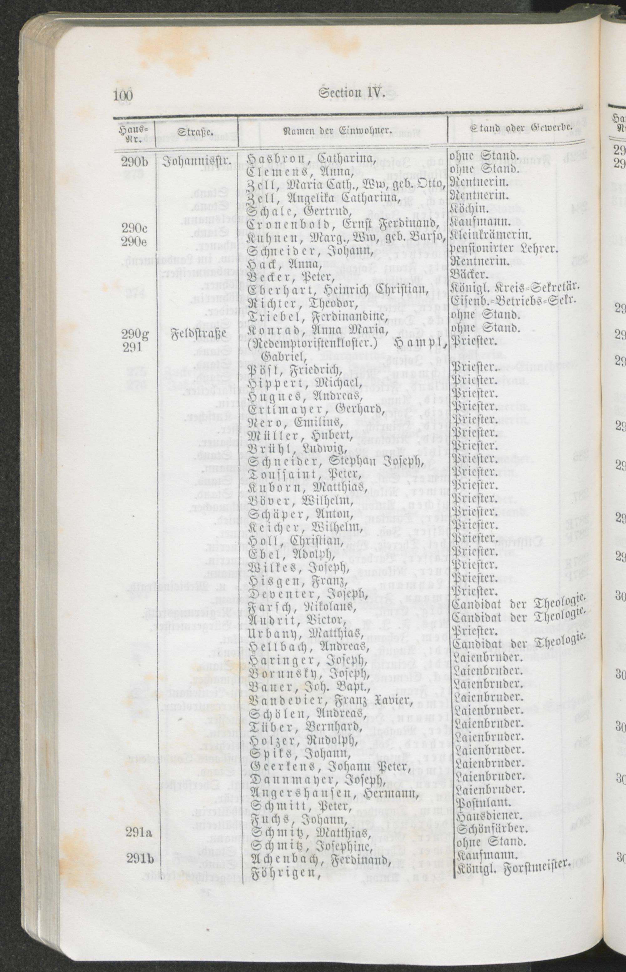 Alphabetisches Verzeichniß der Straßen und Plätze der Stadt Trier und Bezeichnung der Lage nach Sectionen und Hausnummern.