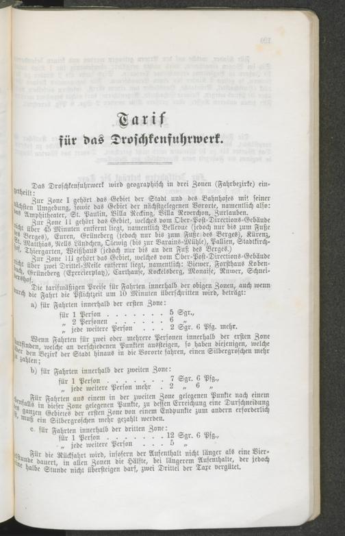 Tarif für das Droschkenfuhrwerk.