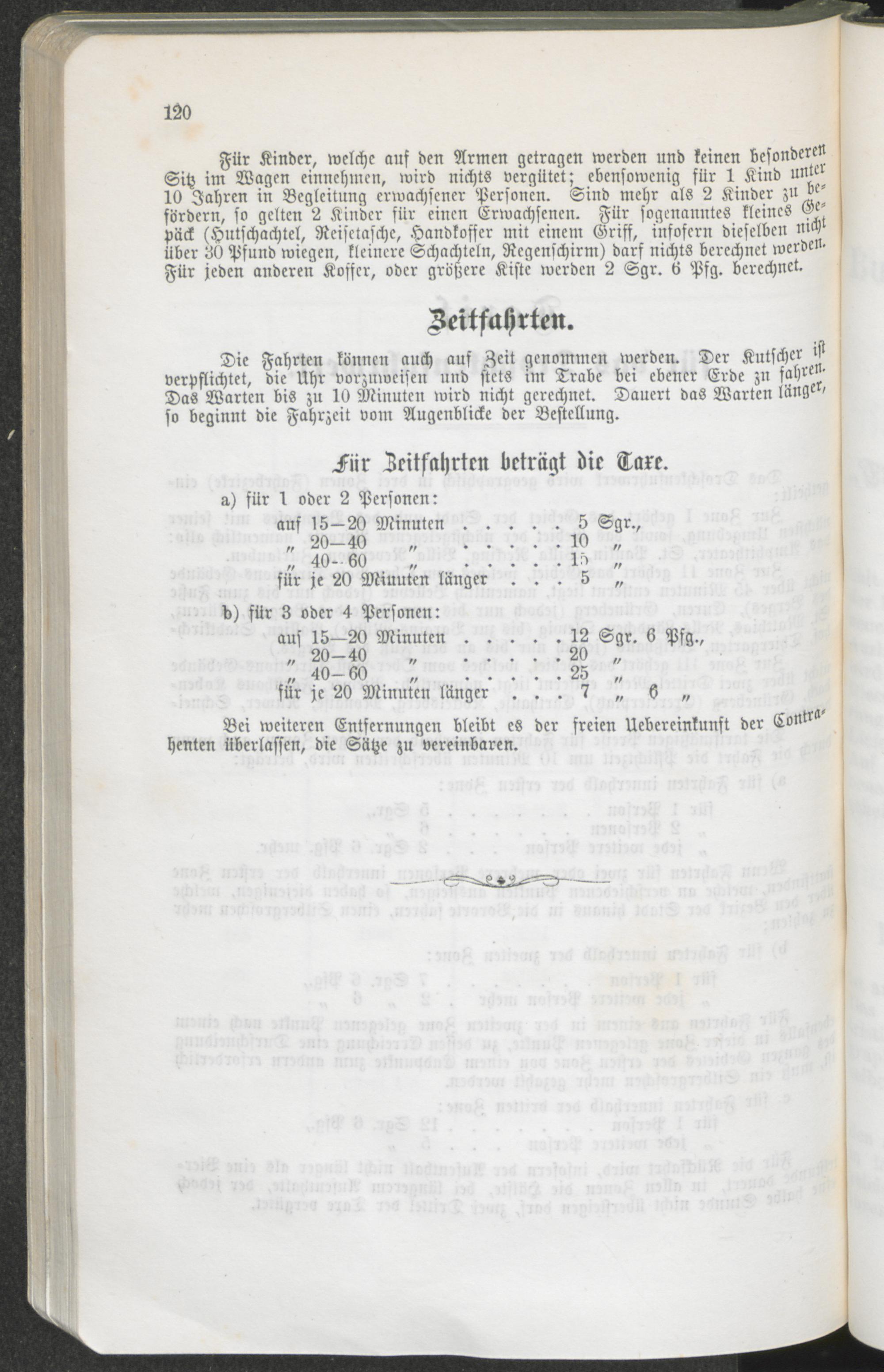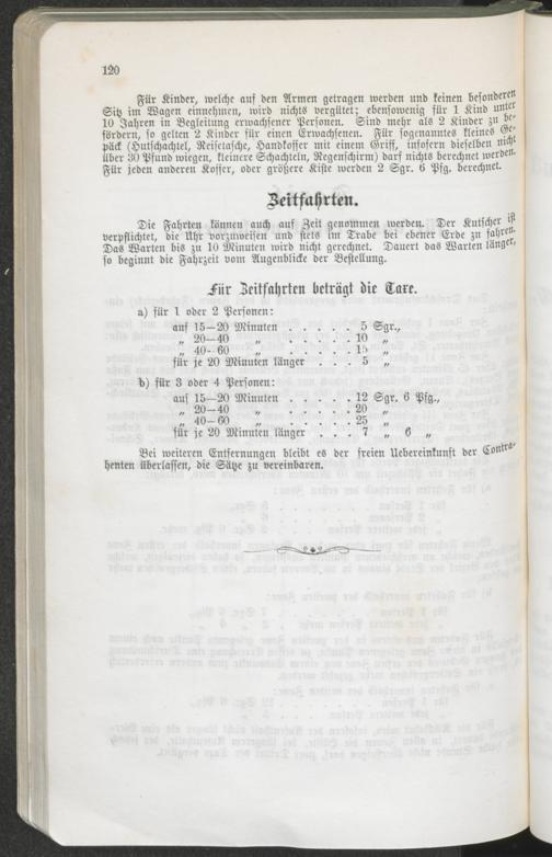 Tarif für das Droschkenfuhrwerk.
