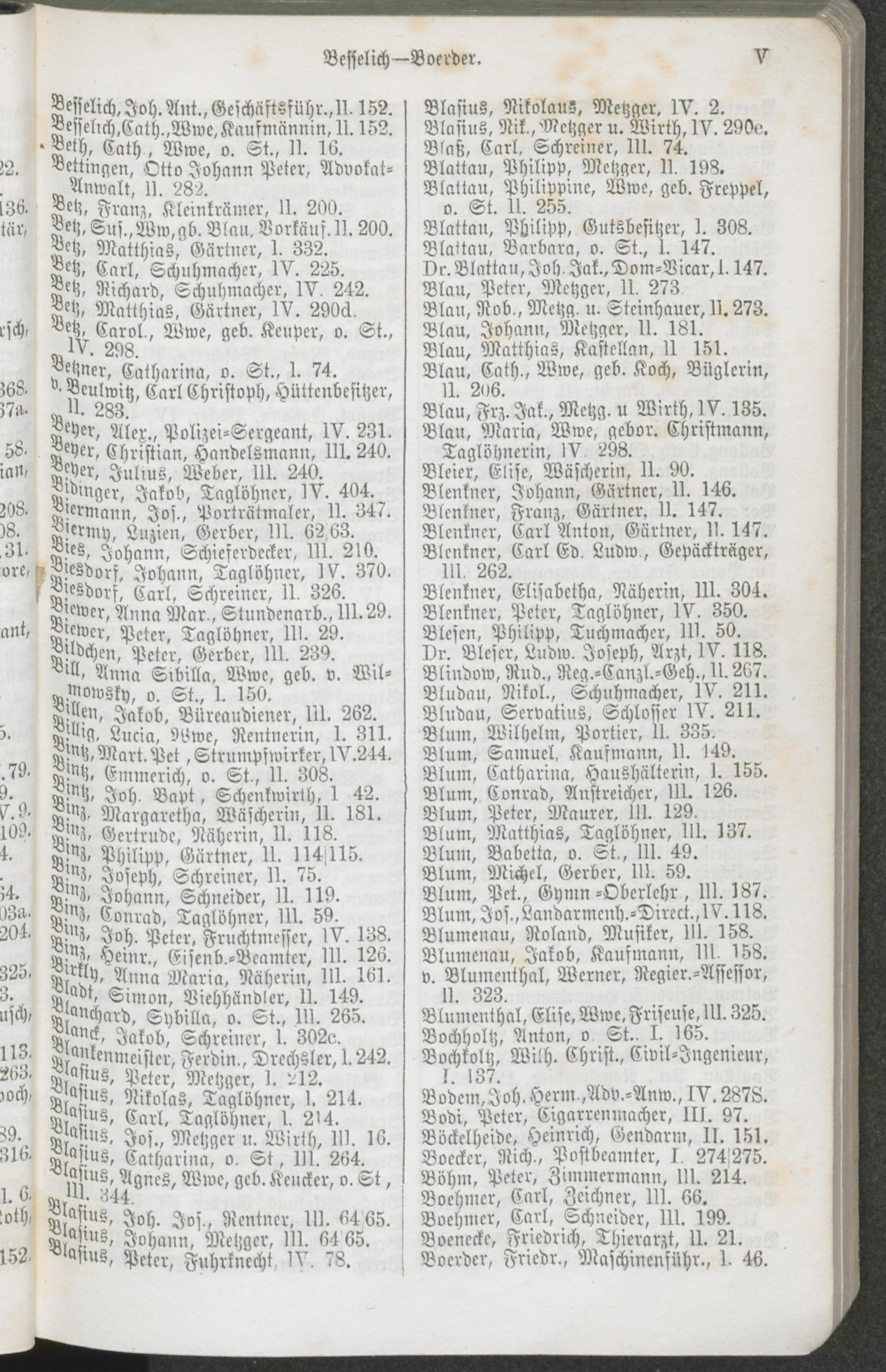 Verzeichniß der Einwohner der Stadt Trier nach ihren Gewerben und Geschäften in alphabetischer Ordnung.