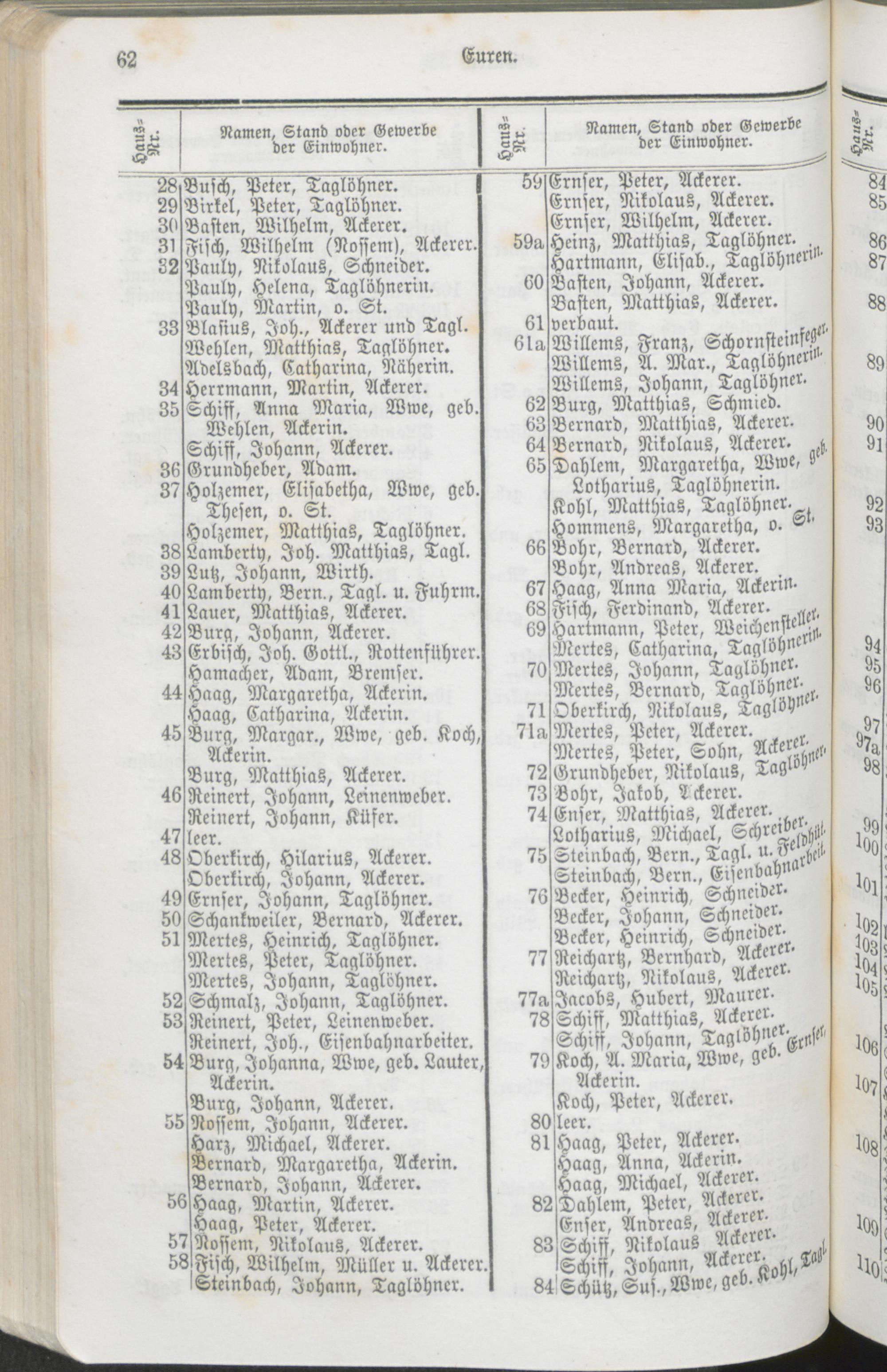 Alphabetisches Namens-Verzeichniß der Einwohner von Trier.