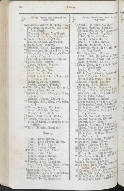 Namentliches Verzeichniß der Bewohner der Vororte und Landgemeinden des Stadtkreises Trier.