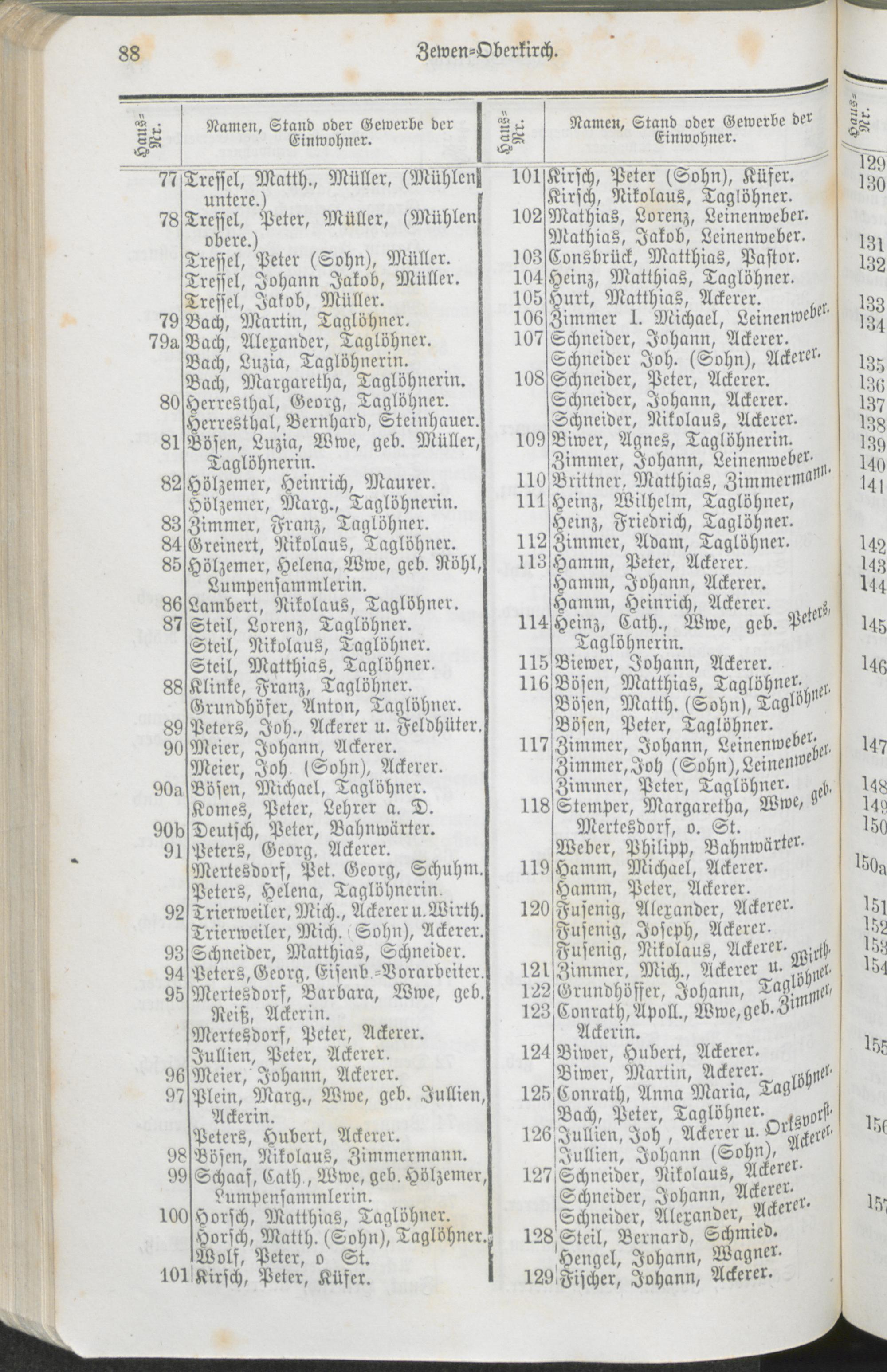 Namentliches Verzeichniß der Bewohner der Vororte und Landgemeinden des Stadtkreises Trier.