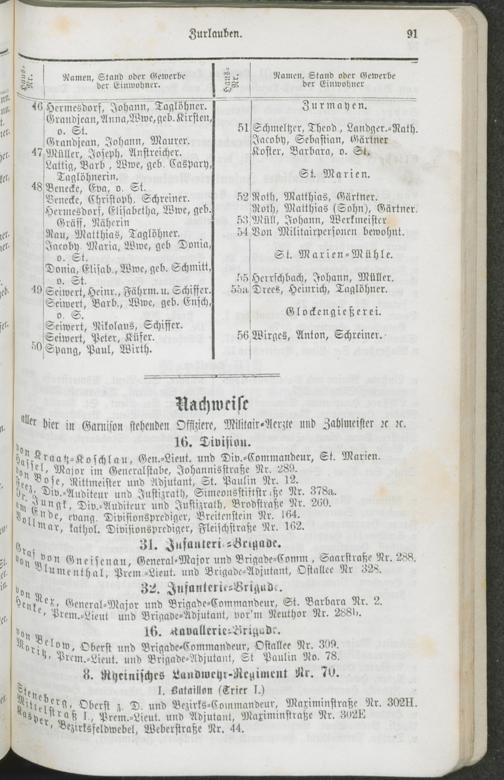 Namentliches Verzeichniß der Bewohner der Vororte und Landgemeinden des Stadtkreises Trier.