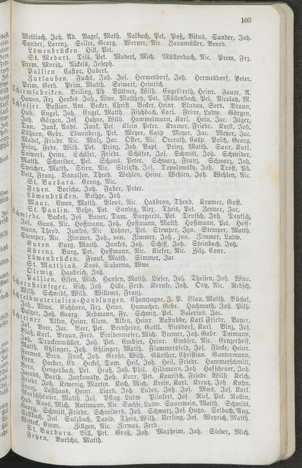 Verzeichniß der Einwohner der Stadt Trier nach ihren Gewerben und Geschäften in alphabetischer Ordnung.