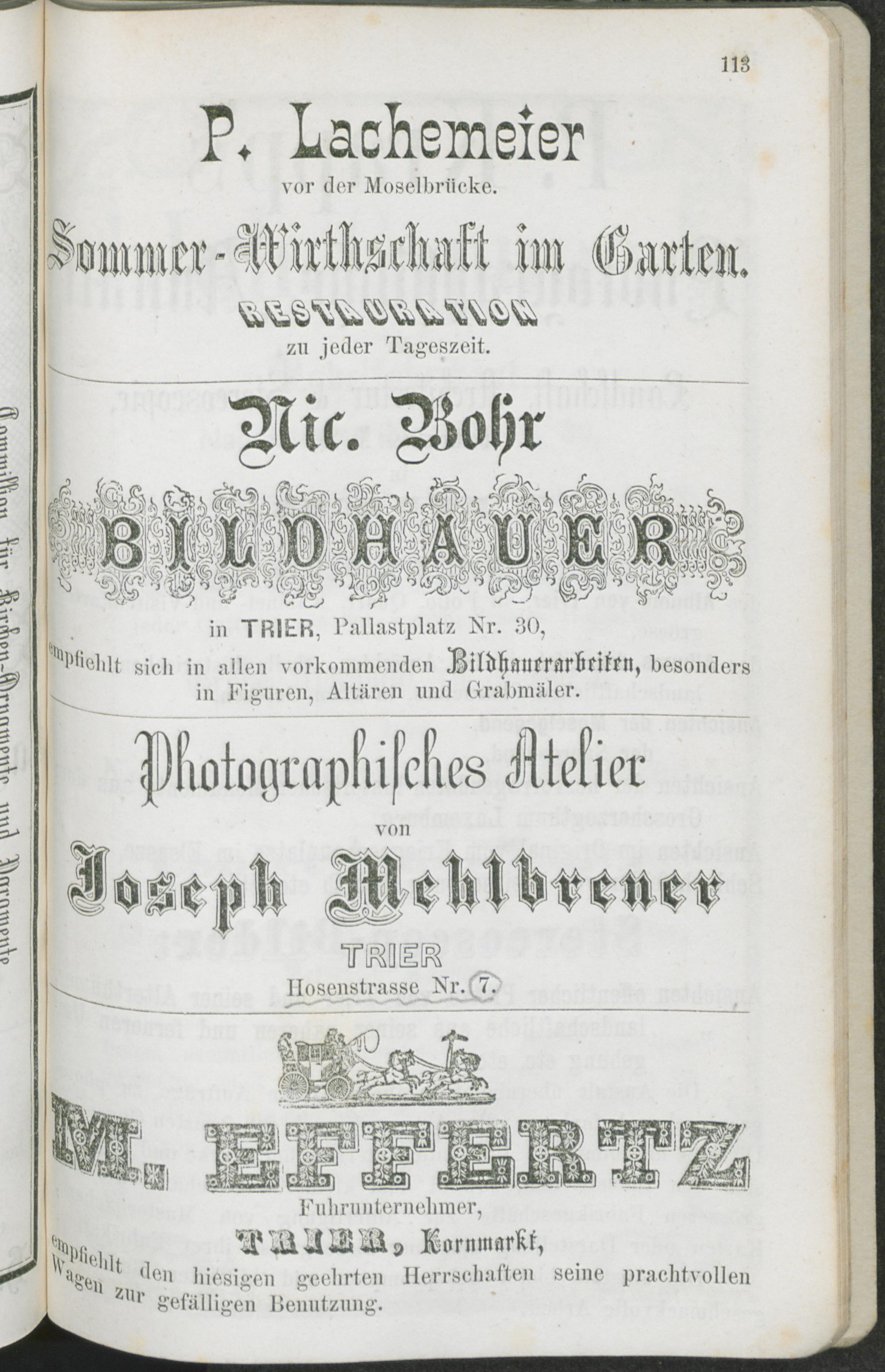 Geschäfts-Anzeigen des Adreßbuches der Stadt Trier.