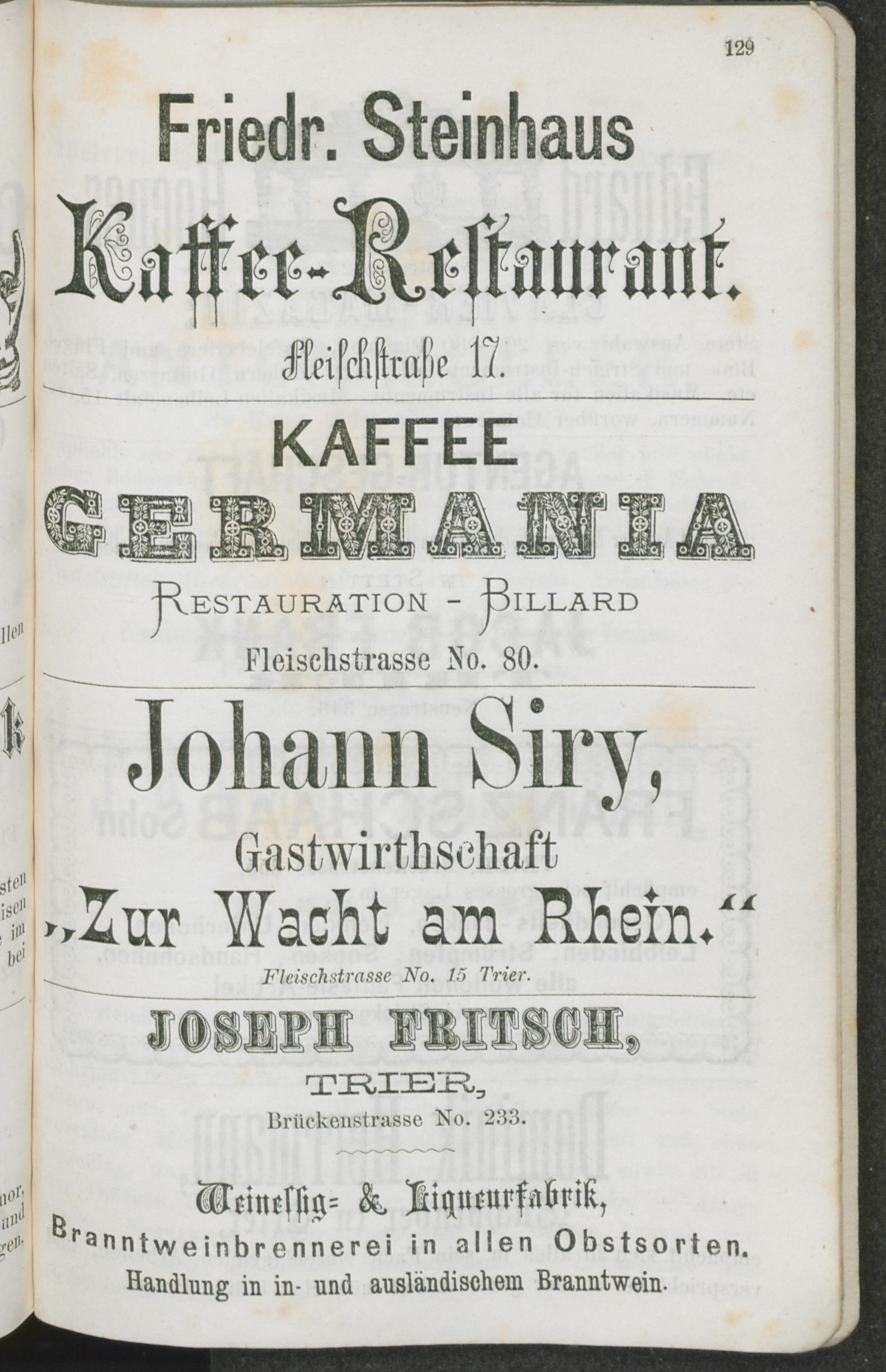 Geschäfts-Anzeigen des Adreßbuches der Stadt Trier.