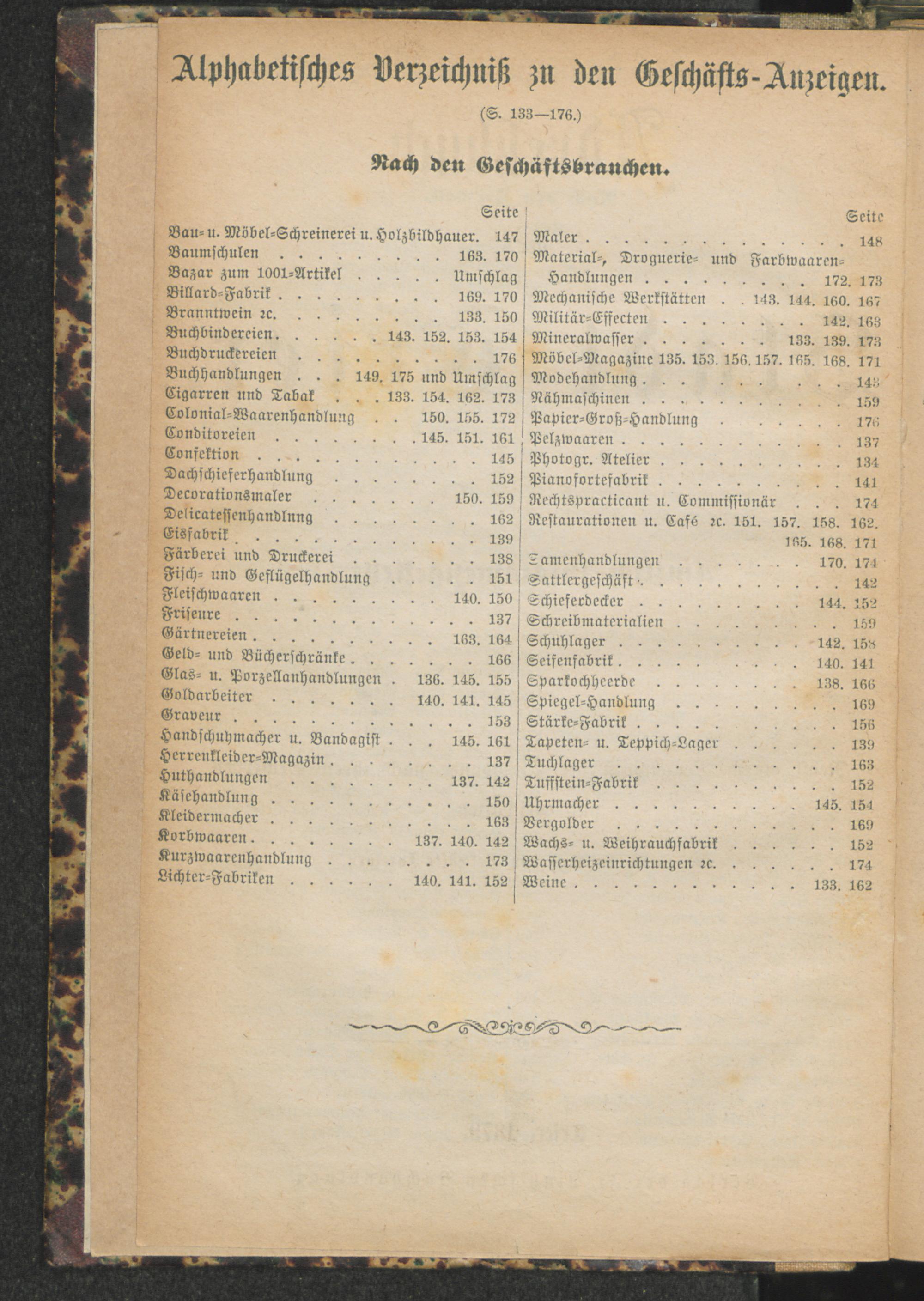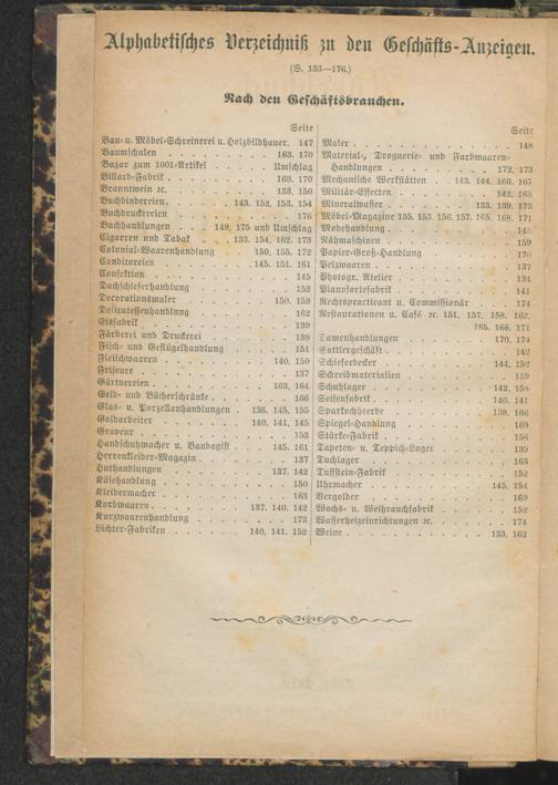 Alphabetisches Verzeichniß zu den Geschäfts-Anzeigen. Nach den Geschäftsbranchen.