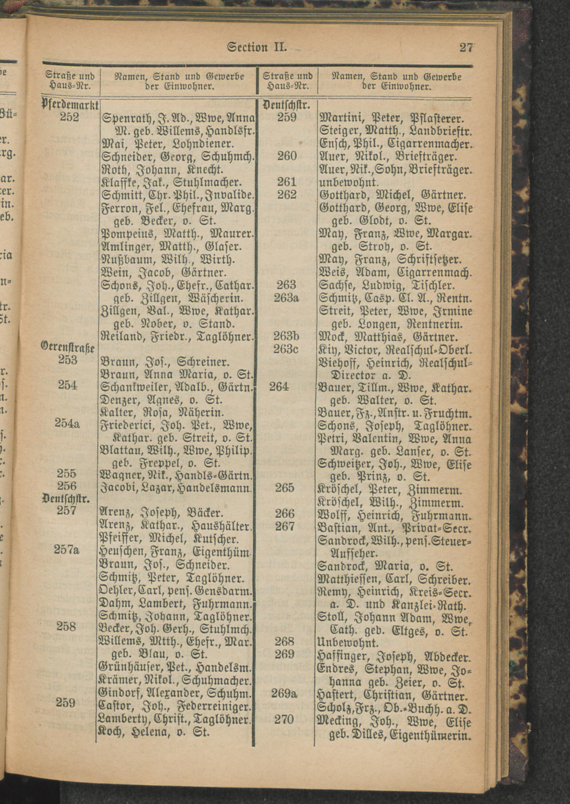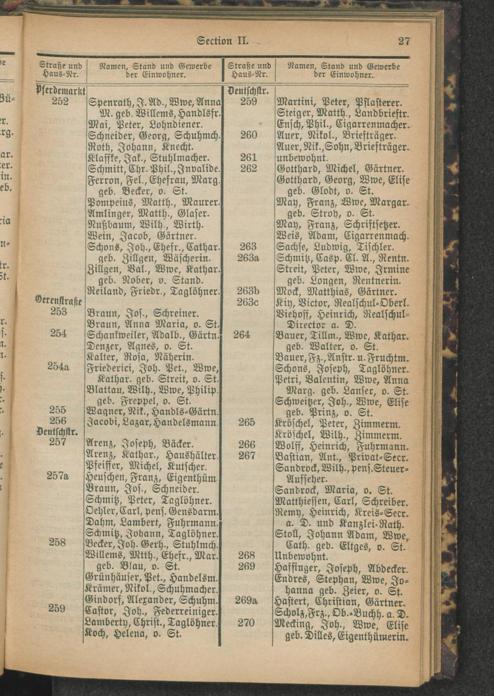 Alphabetisches Verzeichniß der Straßen und Plätze der Stadt Trier und Verzeichnung der Lage nach Section und Hausnummern.