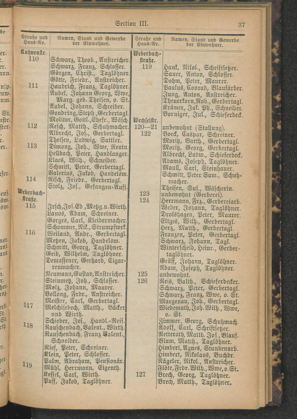 Alphabetisches Verzeichniß der Straßen und Plätze der Stadt Trier und Verzeichnung der Lage nach Section und Hausnummern.
