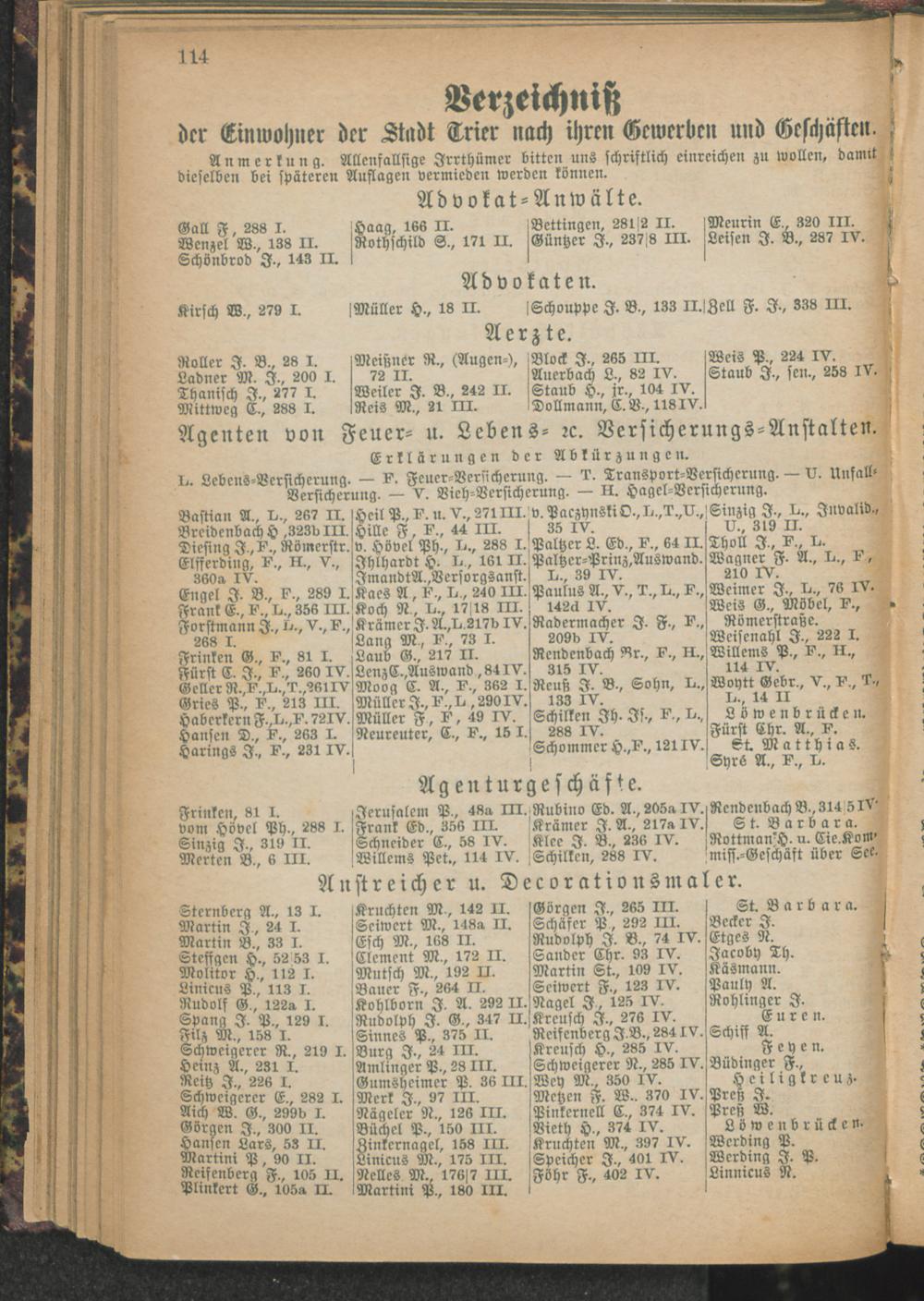 Verzeichniß der Einwohner der Stadt Trier nach ihren Gewerben und Geschäften.