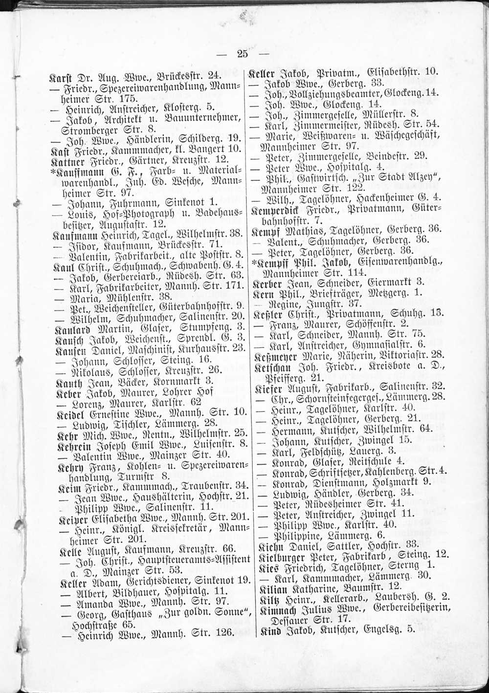1. Alphabetisches Verzeichnis der selbständigen oder eigen Haushaltung führenden...