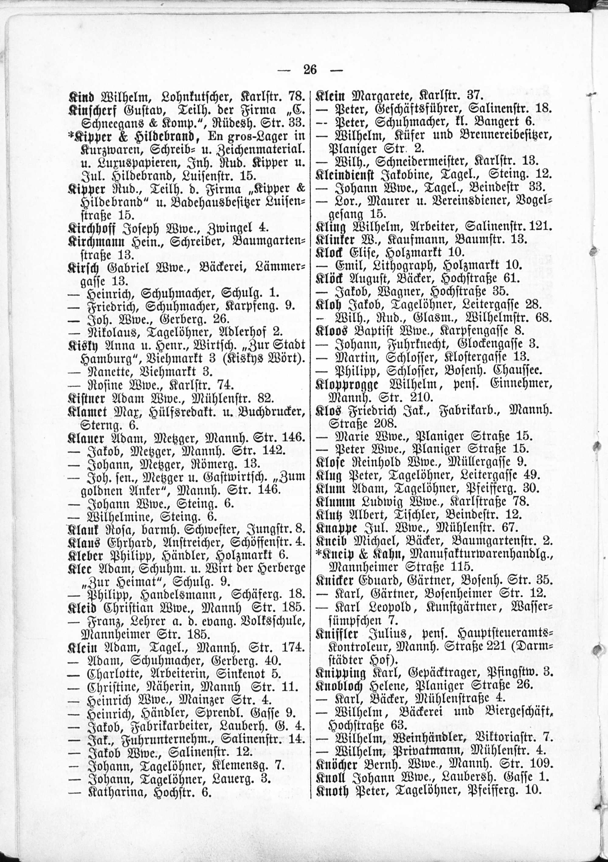 2. Verzeichnis der Haushaltungen nach Straßen und Hausnummern.