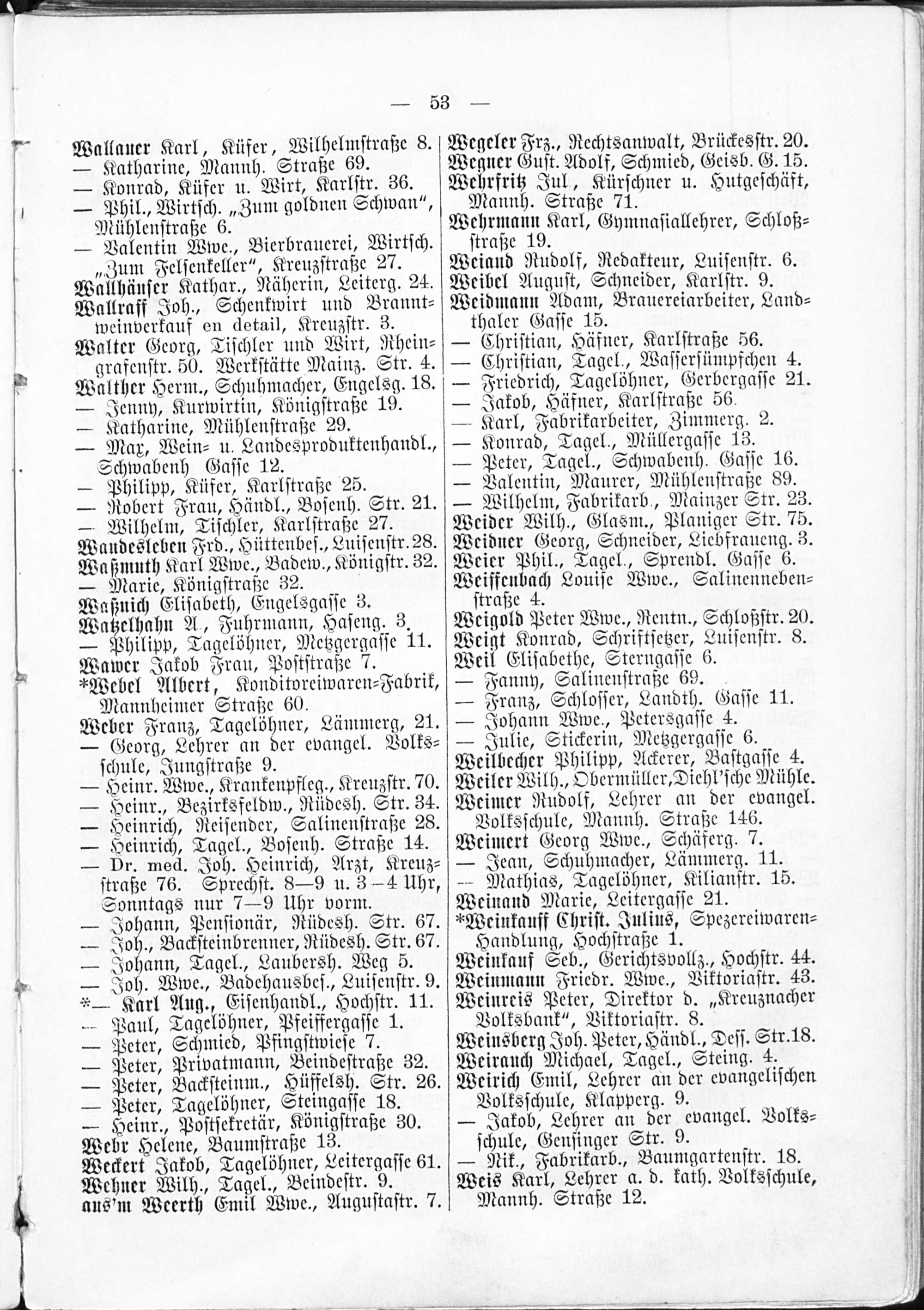 Adressbuch von Stadt und Kreis Kreuznach