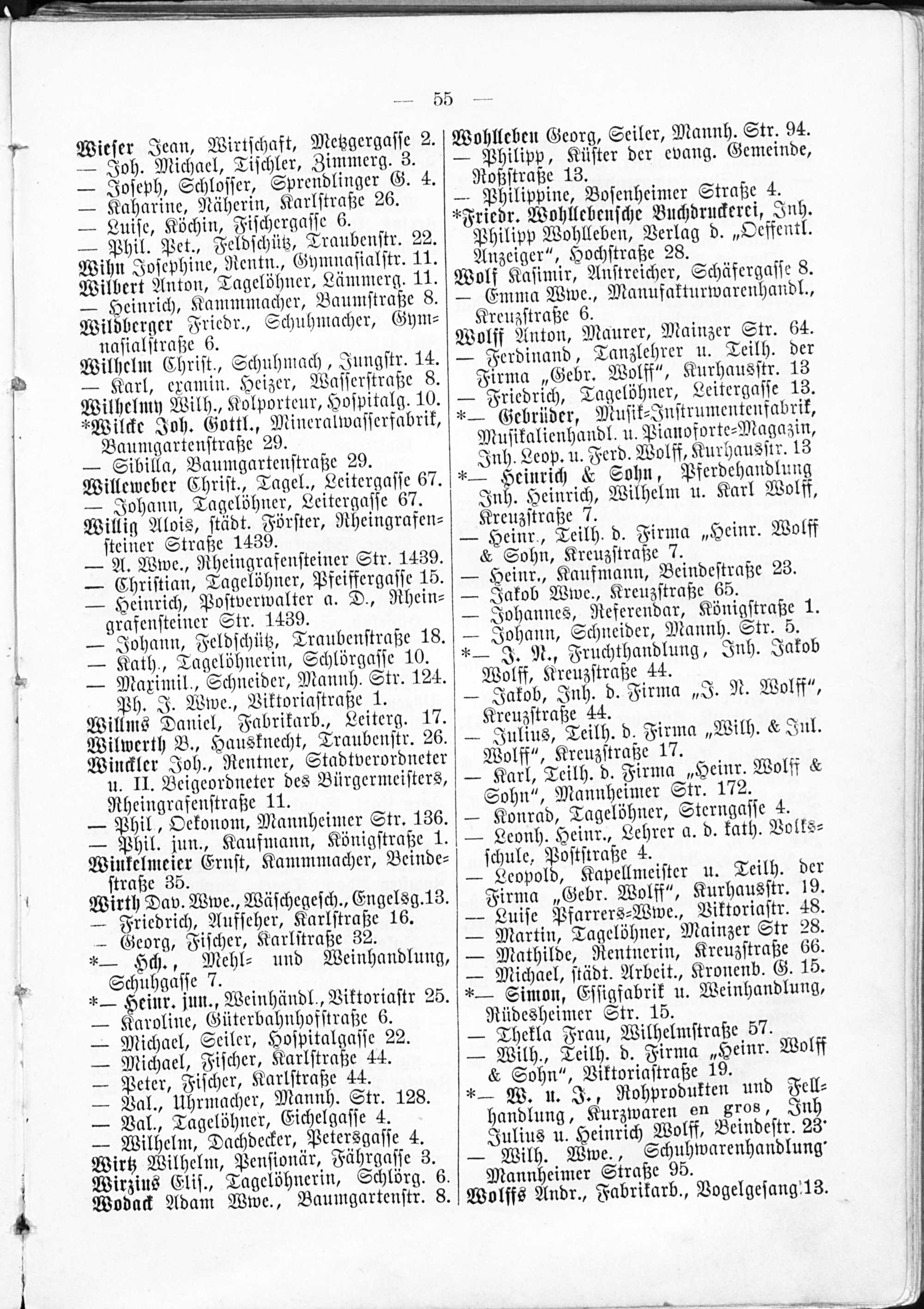 2. Verzeichnis der Haushaltungen nach Straßen und Hausnummern.
