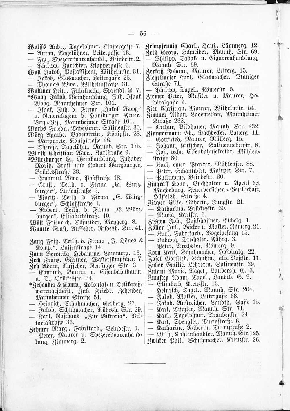 2. Verzeichnis der Haushaltungen nach Straßen und Hausnummern.
