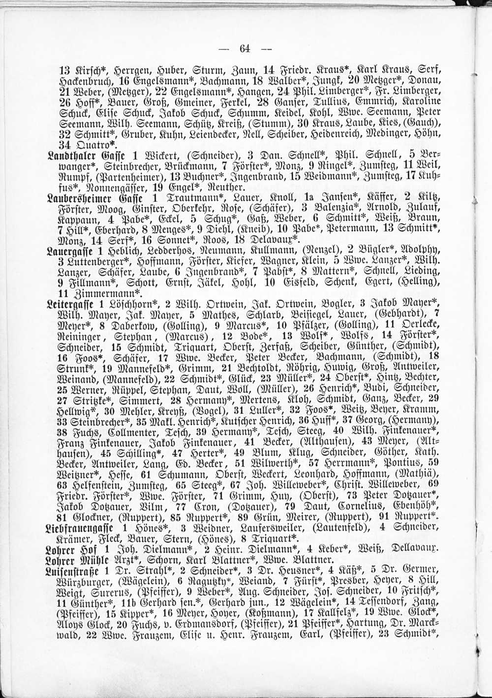 2. Verzeichnis der Haushaltungen nach Straßen und Hausnummern.