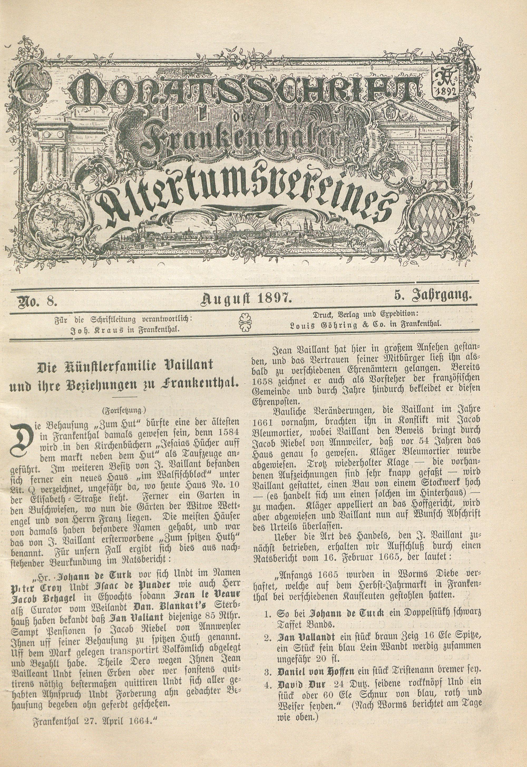 Monatsschrift des Frankenthaler Altertumsvereins