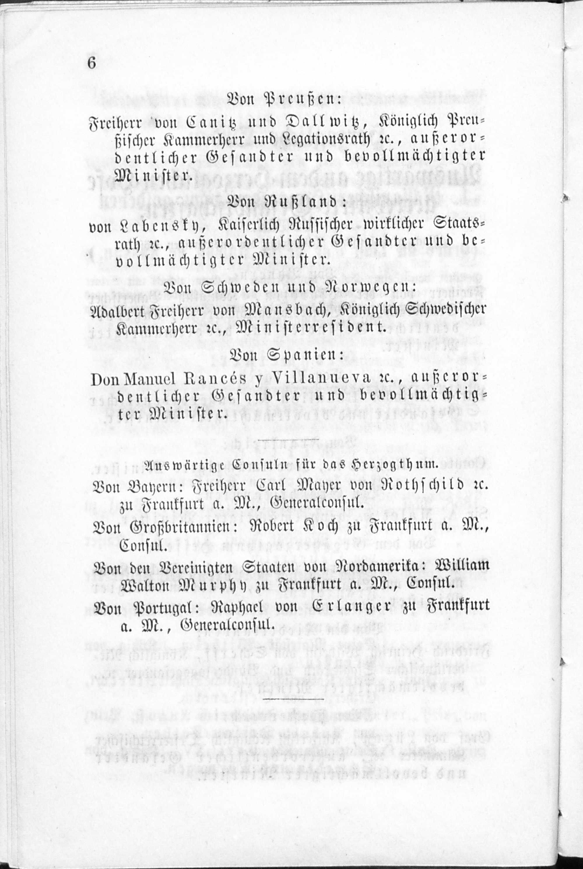 I. Auswärtige an dem Herzoglichen Hofe accreditirte Gesandschaften