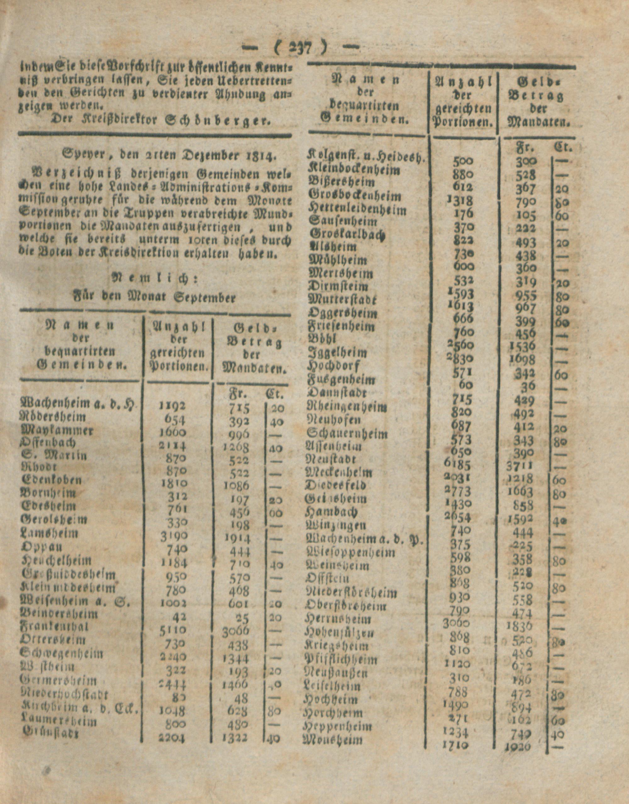 Speyerer wöchentliches Anzeig=Blatt. 1814. (Januar)
