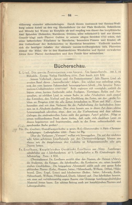 Blätter für pfälzische Kirchengeschichte