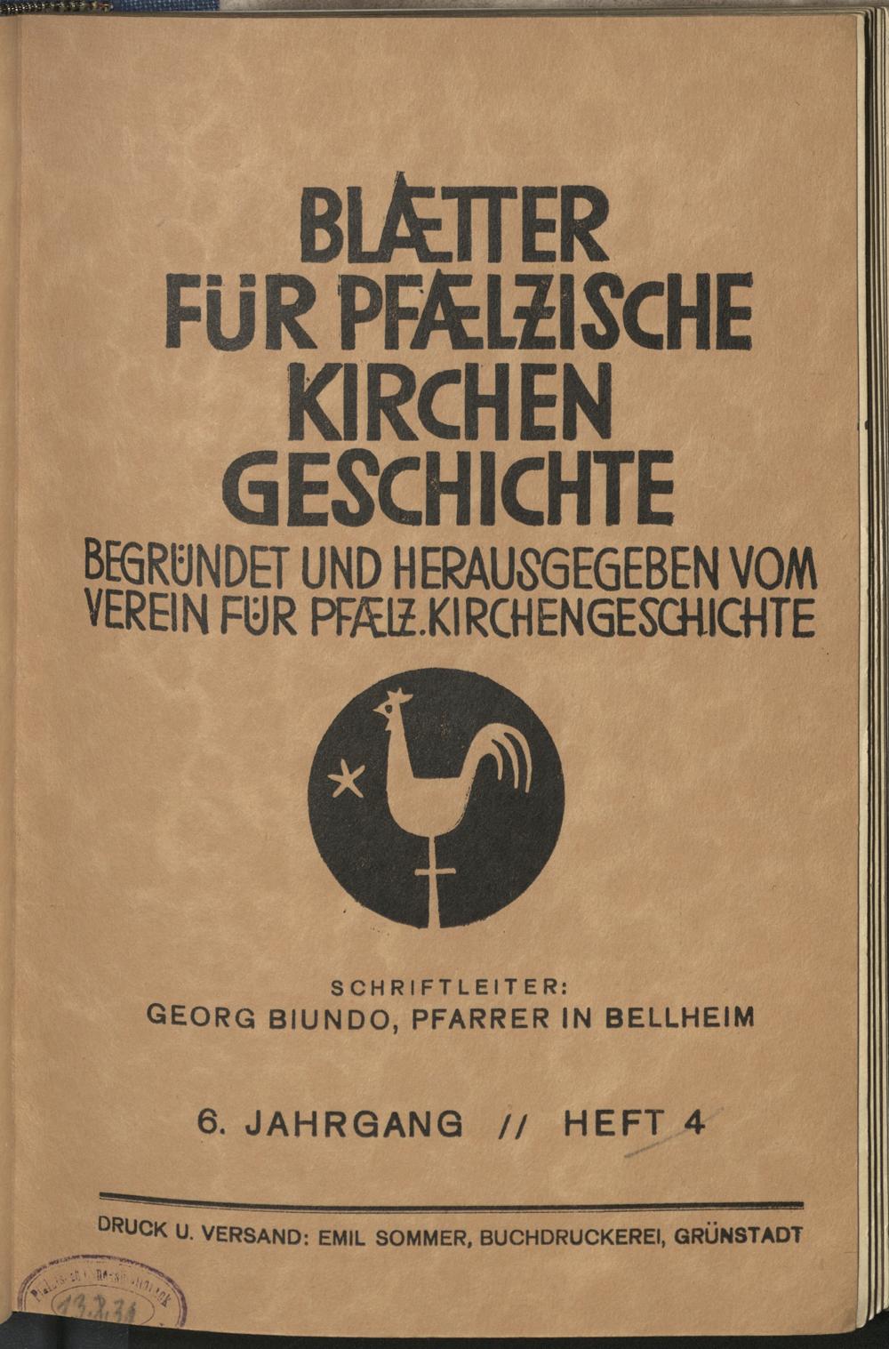 Blätter für pfälzische Kirchengeschichte / Verein für Pfälzische Kirchengeschichte