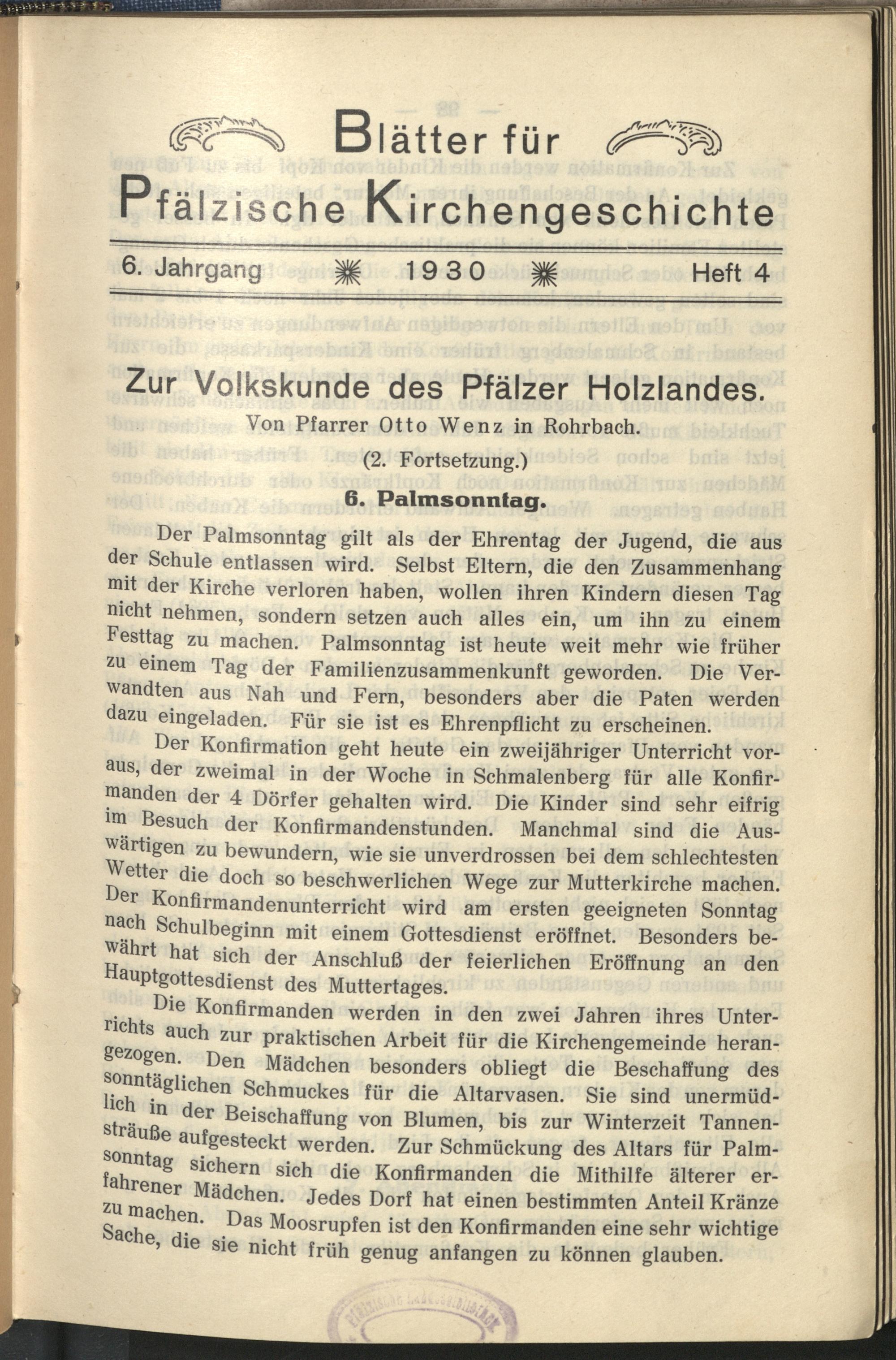 Blätter für pfälzische Kirchengeschichte