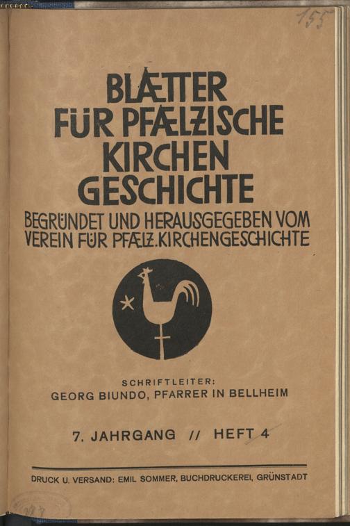 Blätter für pfälzische Kirchengeschichte / Verein für Pfälzische Kirchengeschichte