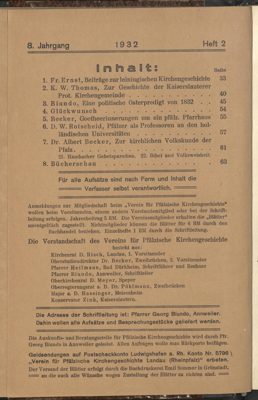 Blätter für pfälzische Kirchengeschichte / Verein für Pfälzische Kirchengeschichte