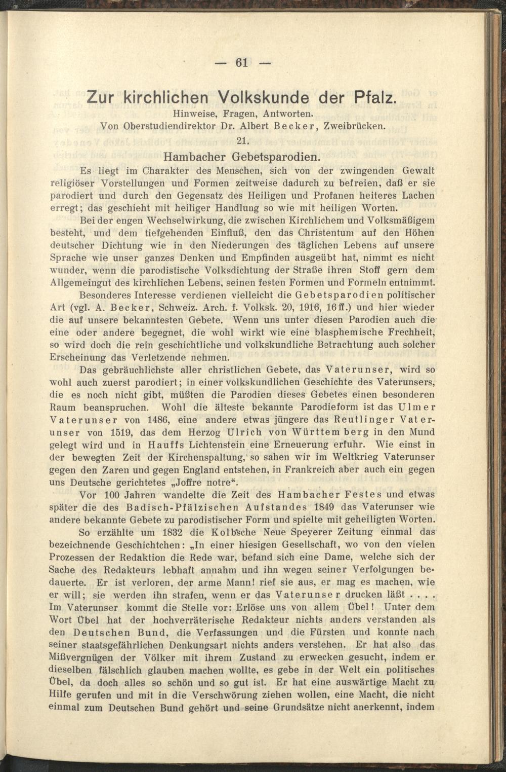 Blätter für pfälzische Kirchengeschichte