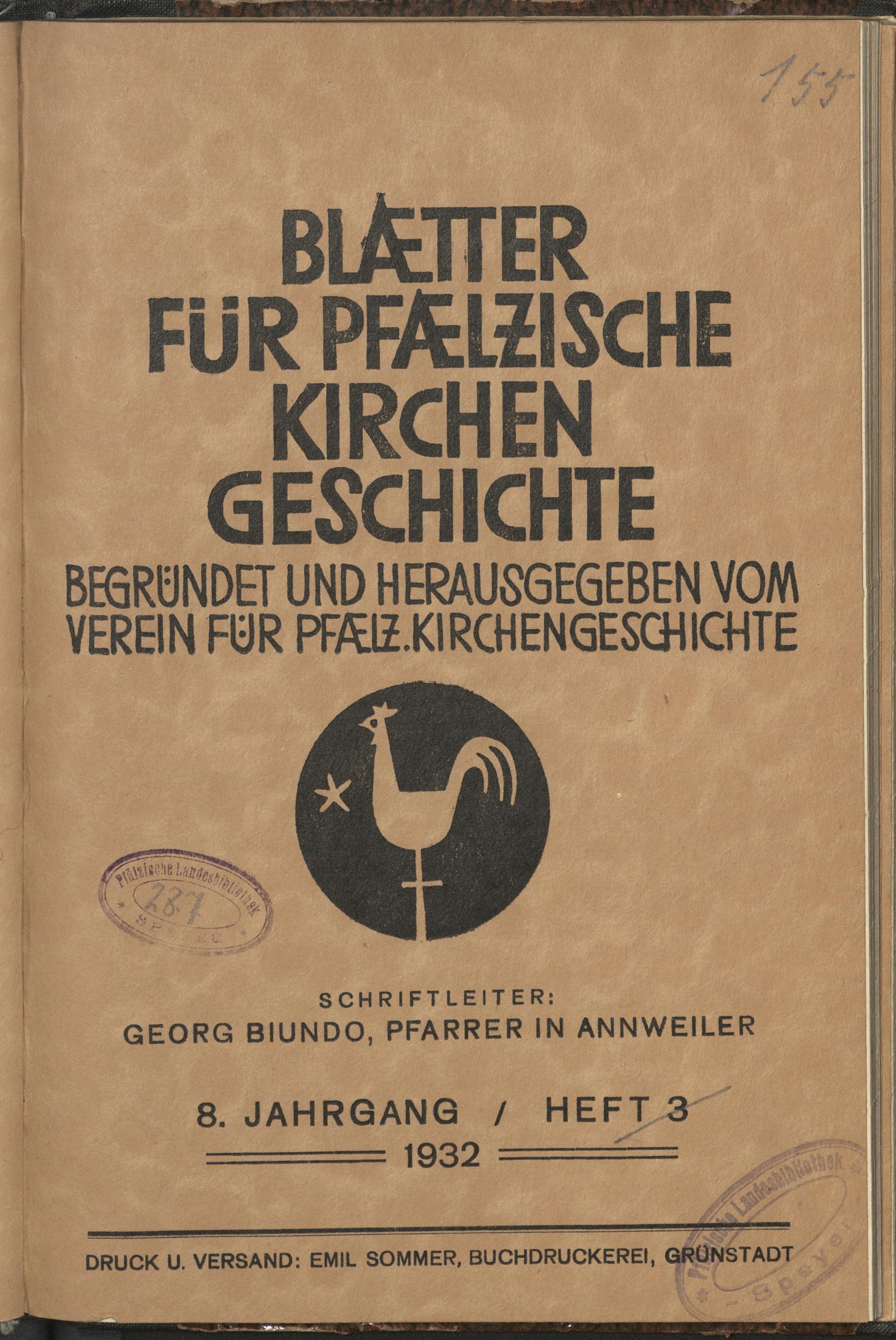 Blätter für pfälzische Kirchengeschichte / Verein für Pfälzische Kirchengeschichte
