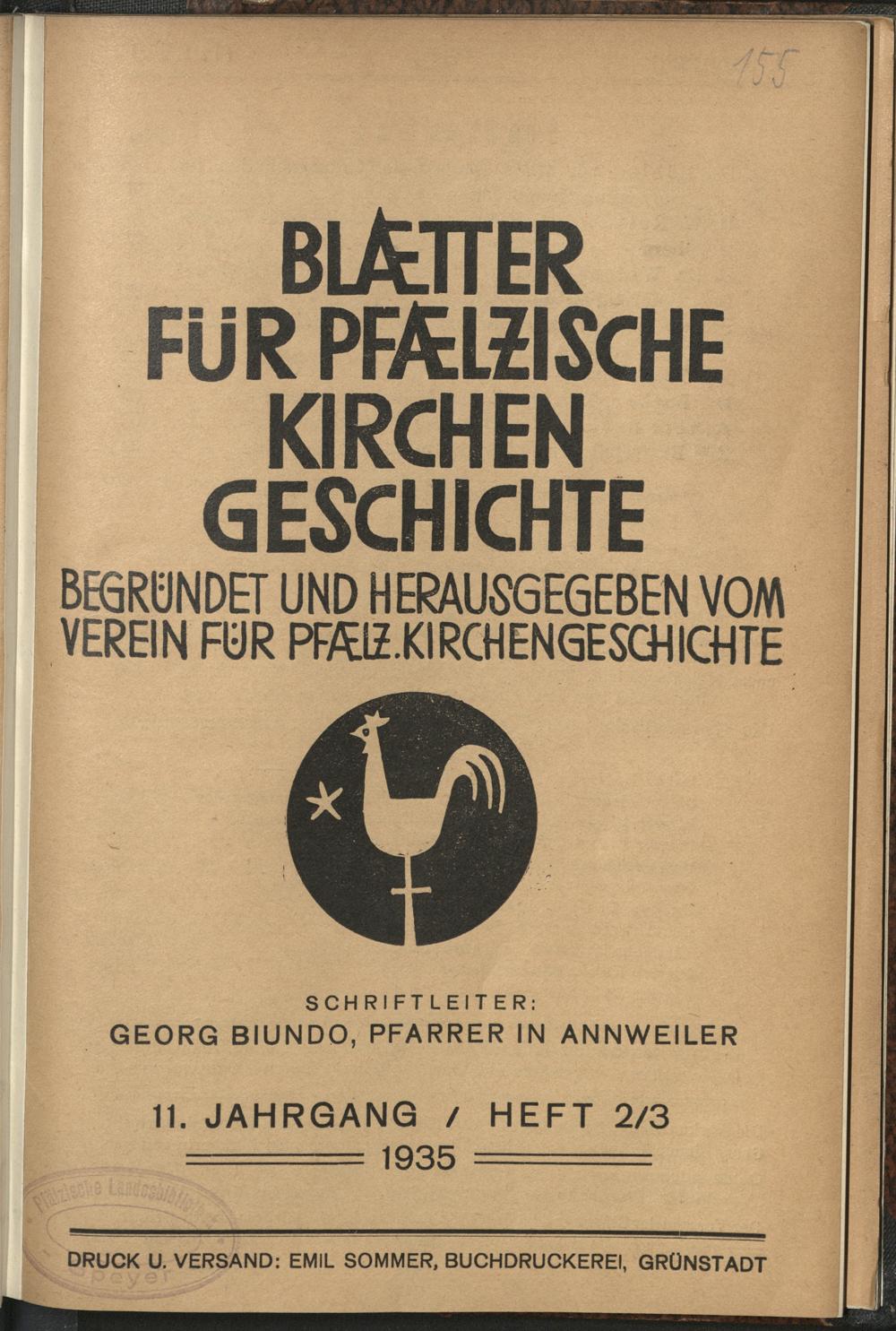 Blätter für pfälzische Kirchengeschichte / Verein für Pfälzische Kirchengeschichte
