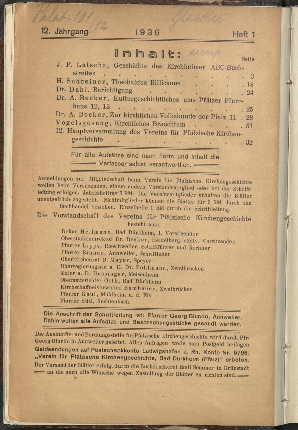 Blätter für pfälzische Kirchengeschichte / Verein für Pfälzische Kirchengeschichte