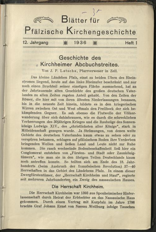 Blätter für pfälzische Kirchengeschichte
