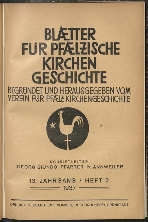 Blätter für pfälzische Kirchengeschichte / Verein für Pfälzische Kirchengeschichte