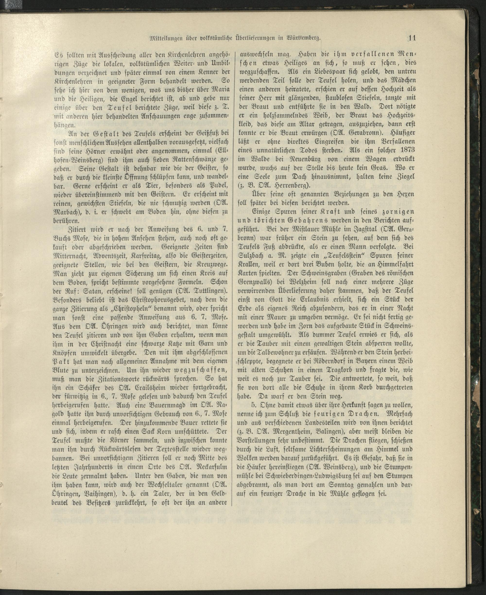 Mitteilungen über volkstümliche Überlieferungen in Württemberg