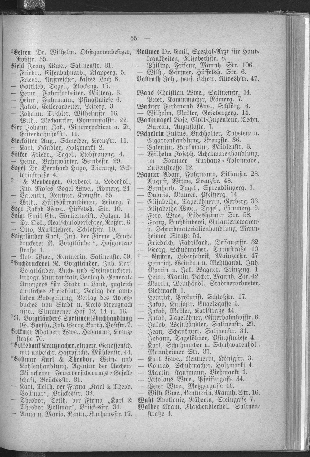 Adressbuch von Stadt und Kreis Kreuznach