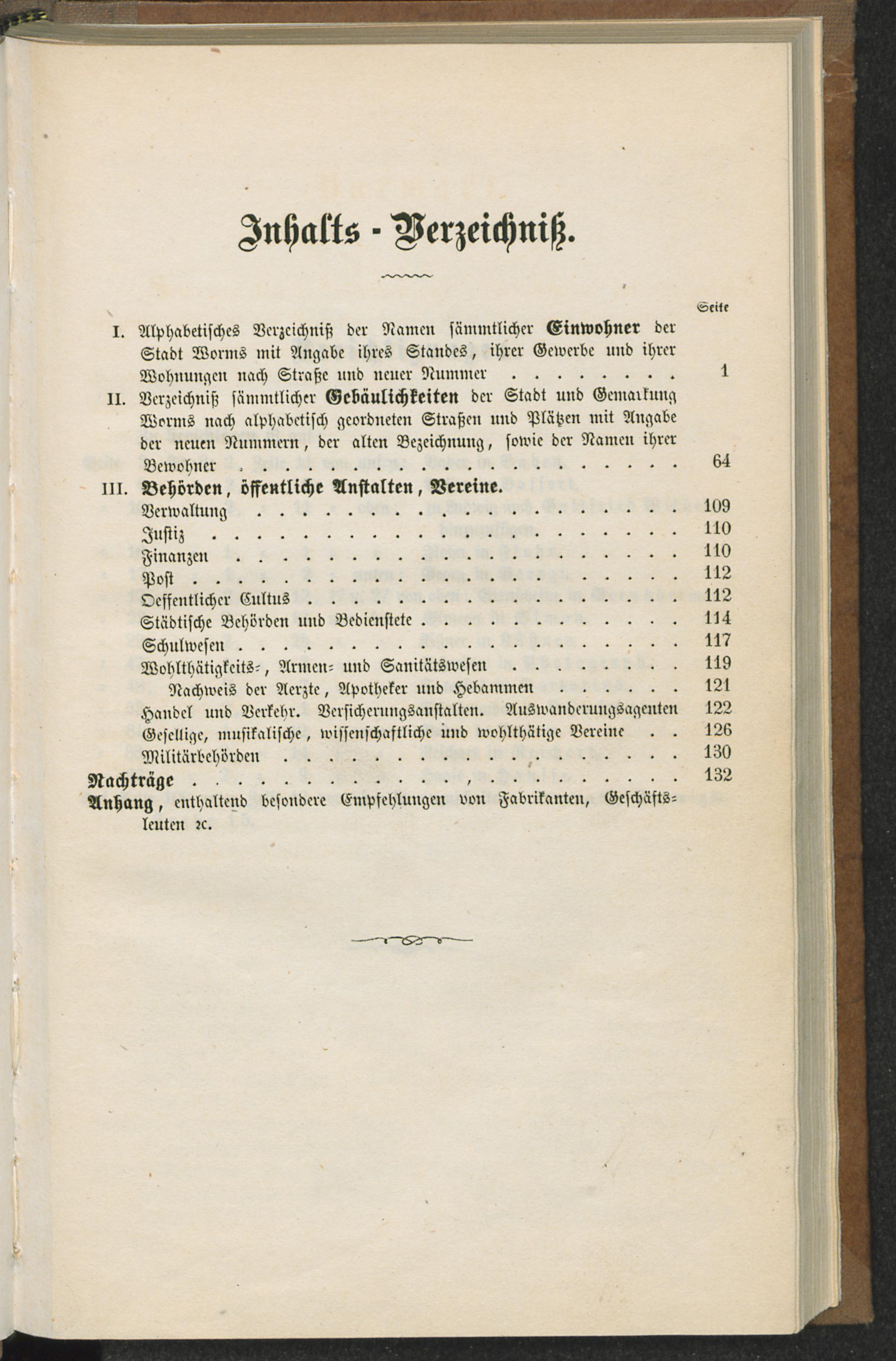 I. Verzeichniß der Namen sämmtlicher Einwohner der Stadt Worms