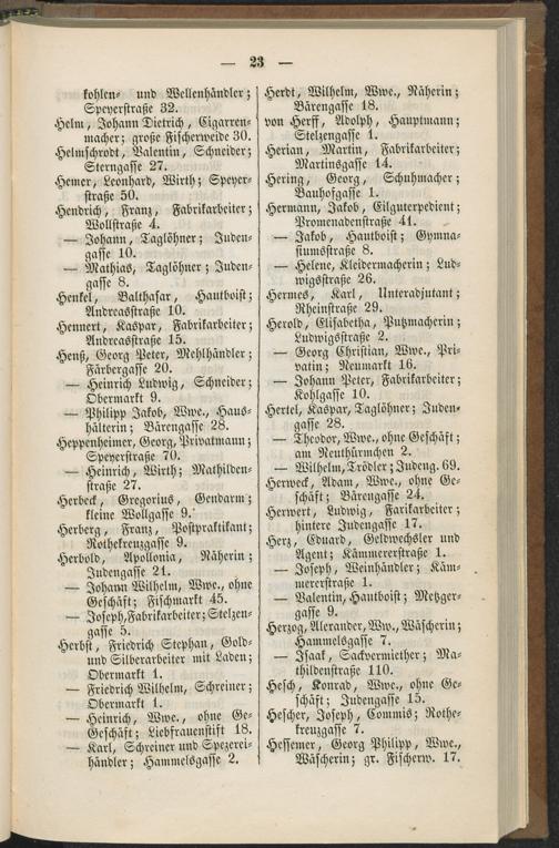 I. Verzeichniß der Namen sämmtlicher Einwohner der Stadt Worms