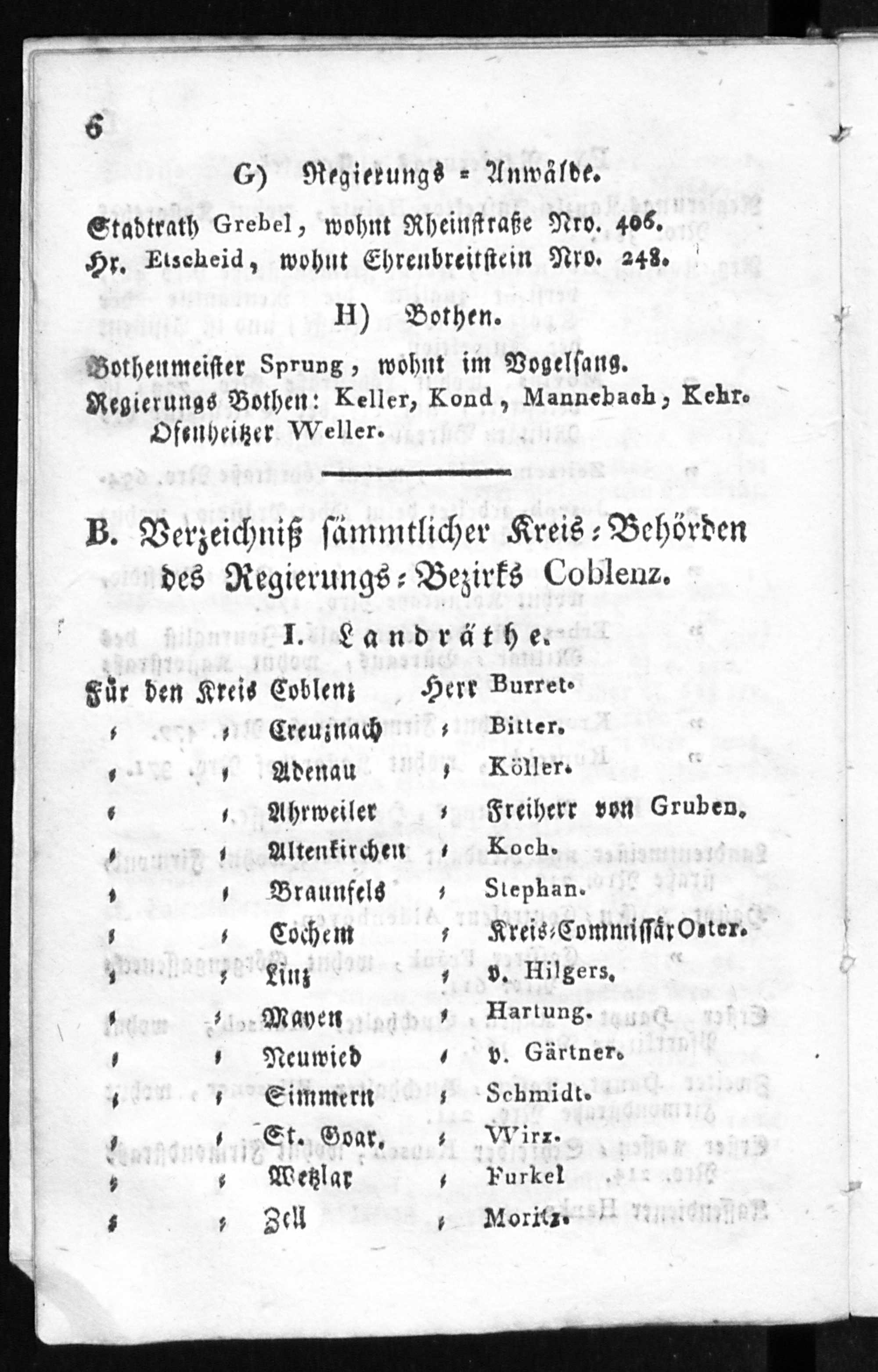 B. Verzeichniß sämmtlicher Kreis-Behörden des Regierungs-Bezirks Coblenz