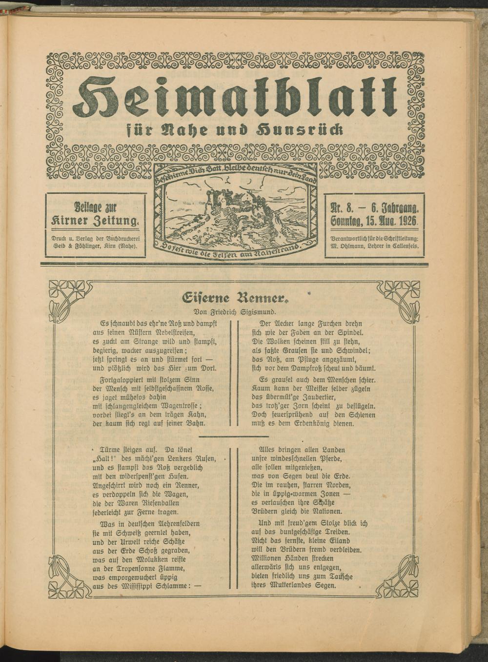 Heimatblatt für Nahe und Hunsrück