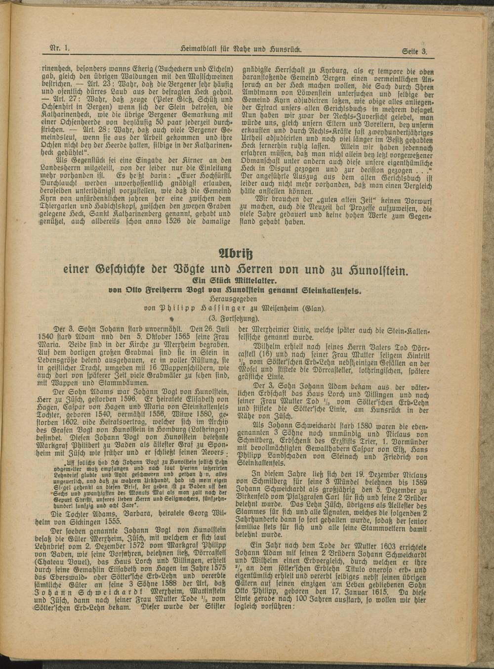 Heimatblatt für Nahe und Hunsrück