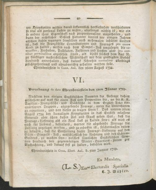 Commissarisches an den General-Direktor B. Bella über die Vertheilung der Kriegslasten erstattetes Gutachten : mit den einschleigenden Trierischen Verordnungen, und den gefolgten Landschaftlichen Deputations-Abschlüssen