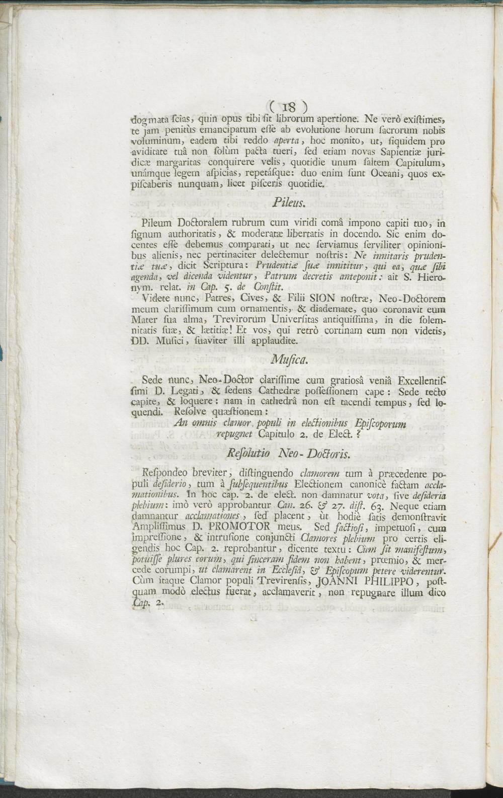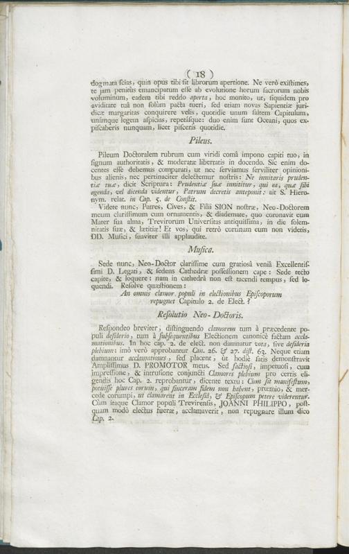 Reliquiae Cogitationis Diem Festum Sabbathi Jucundi Juridici Ante Dominicam Laetare Die 27. Mart. MDCCLVI. Agentes, & Solemni Promotione Doctorali, Velut Monumento Perenni, Consignantes Gaudia Extraordinaria Populi Treverici in Feriis ... Domini Nostri Clementissimi, D. Joannis Philippi ... De Walderdorff, Nunc Trevirorum Archiepiscopi ... Almae, & antiquissimae Universitatis Trevirensis Cancellarii Nati Ex Decreto, Et humillimâ devotione conjubilantis Inclytae Juridicae Facultatis, Ibidem