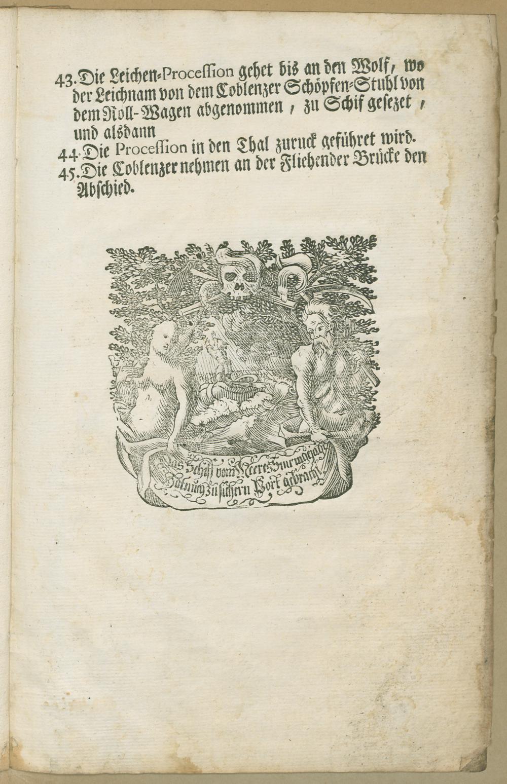 Ordnung der Leichen-Procession, Weyland Seiner Churfürstlichen Gnaden zu Trier ... Herrn Franz Georgen Höchstseeligen Andenckens, Aus dem Thal Ehrenbreitstein, nacher Coblenz, bis an den so genannten Wolf, in das Schif. den 20. April 1756