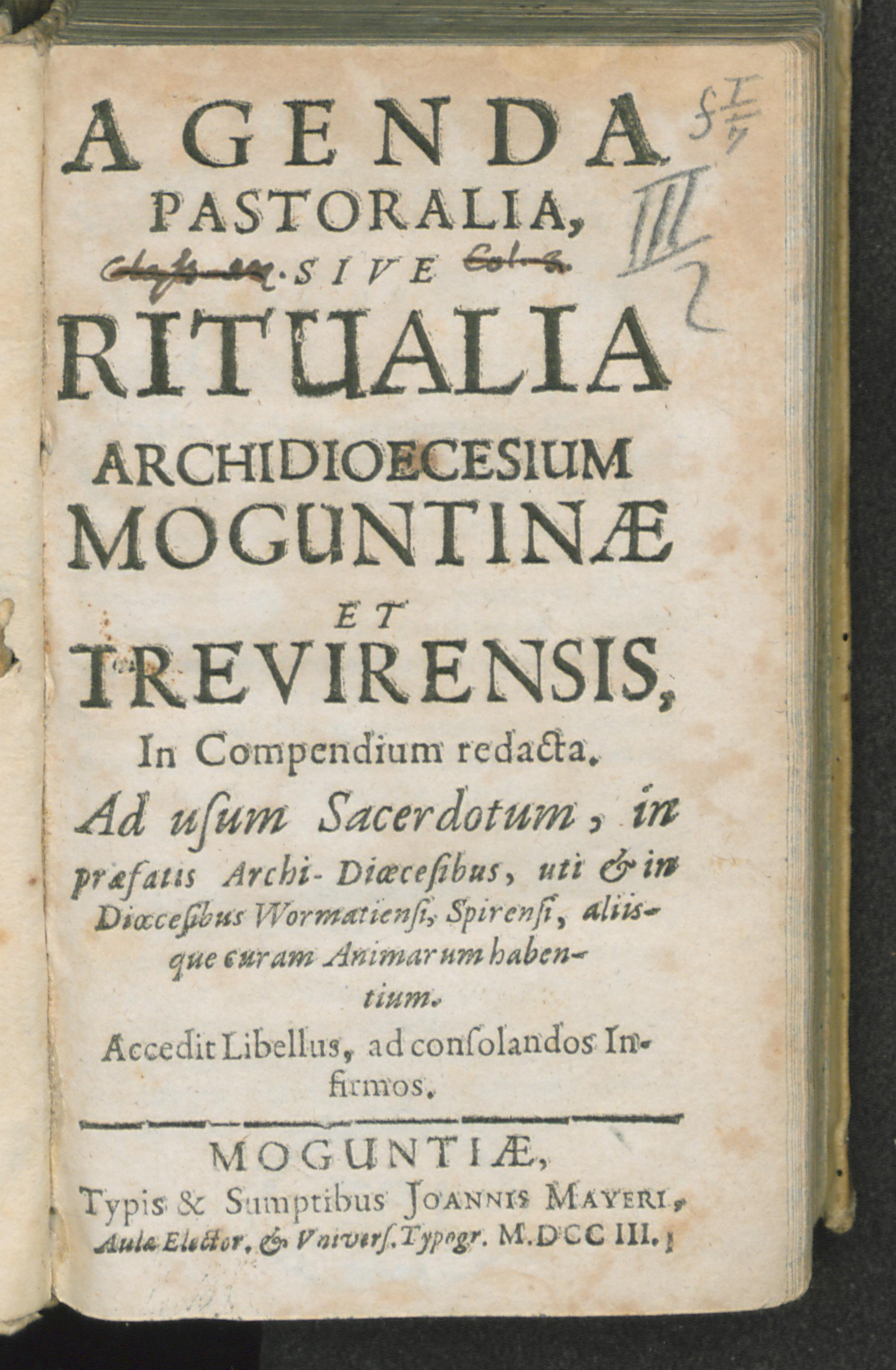 Agenda pastoralia sive Ritualia archidioecesium Moguntinae et Trevirensis