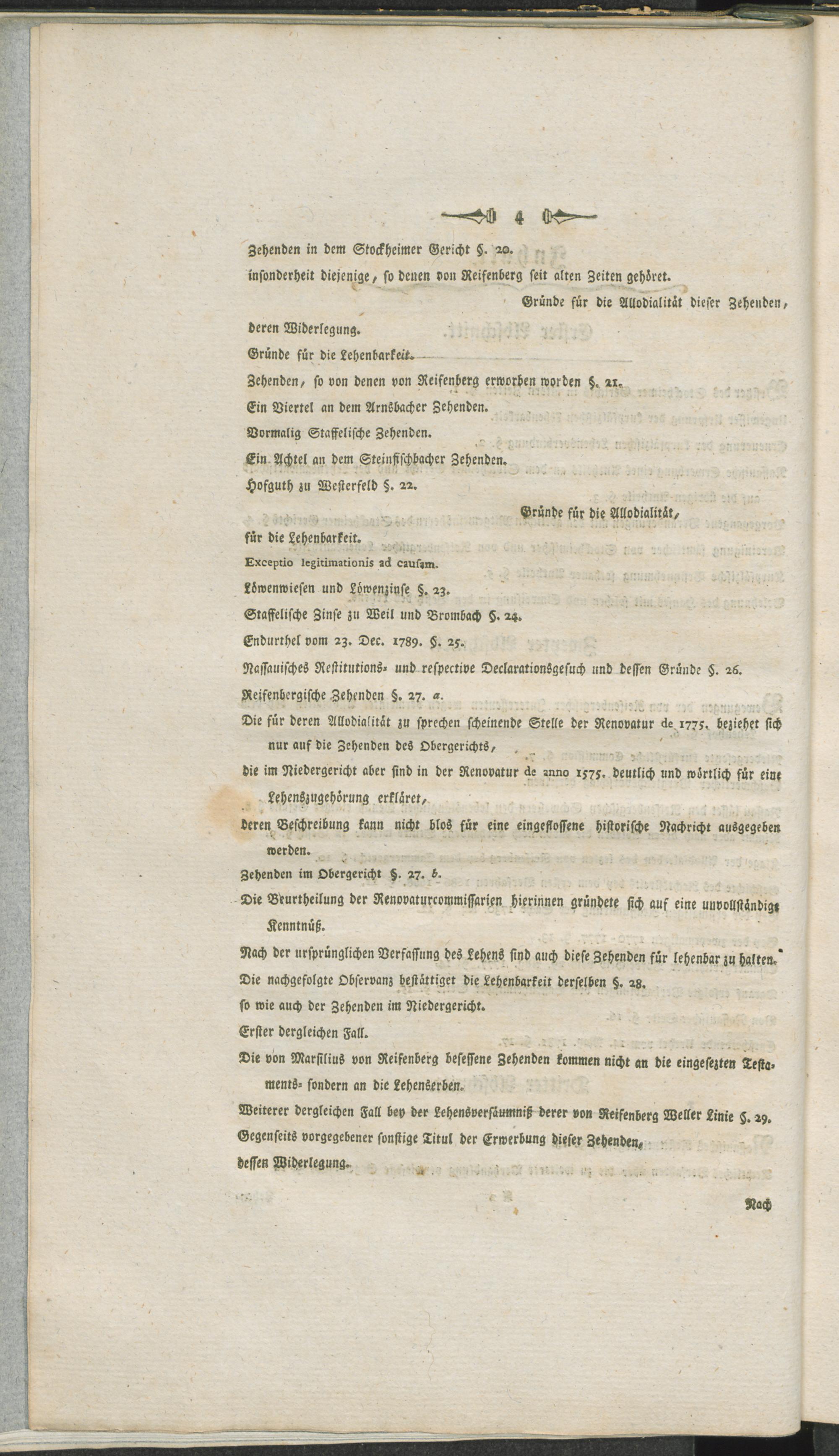 Summarische Darstellung derer Gründe, worauf es in der Klagsache des Herrn Grafen von Bassenheim gegen das Fürstliche Haus Nassau-Usingen die angesprochenen von Reifenbergischen Allodien in und zum Theil auch außer dem Stockheimer Gericht betreffend, dermal nachgesuchter Restitution des Beklagten hohen Theils annoch ankommt : nebst vorausgeschickter kurzer Geschichte des Stockheimer Gerichts, soweit solche zur Übersicht gegenwärtiger Sache nothwendig ist
