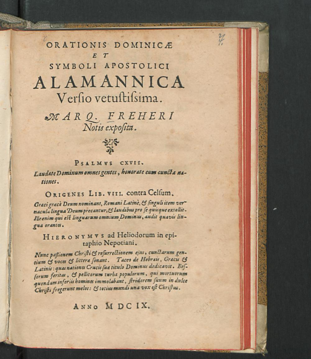 Orationis Dominicae Et Symboli Apostolici Alamannica Versio vetustissima / Marq. Freheri Notis exposita