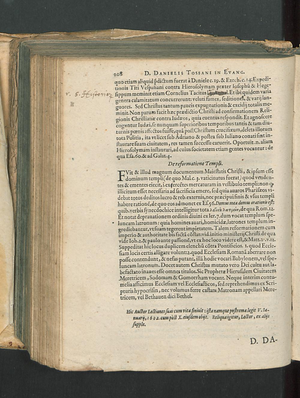 D.DANIELIS TOSSANI In Evangelivm Secvndvm Ioannem Praelectiones