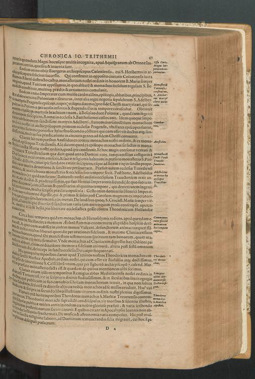 2 (1601) Iohannis Trithemii Spanheimensis Primo, Deinde D. Iacobi Maioris Apvd Herbipolin Abbatis, viri suo æuo doctissimi Secvndæ Partis Chronica Insignia Dvo : I. Coenobii Hirsavgiensis, Diœcesis Spirensis: eius fundationem & progressum ab Anno Christi DCCCXXX. vsque ad Annum MCCCLXX. II. Coenobii Spanheimensis, Diœcesis Moguntinensis: eius fundationem & progressum ab Anno Christi MCXXIIII. vsque ad Annum MDXXVI. vel potius res ab octo illis sæculis in tota Ecclesia & Imperio memorabiliter gestas, complectens; Qvorvm Privs Collatione Archetypi Ipsivs Auctoris manuscripti correctius & plenius; posterius verò istud nunc primùm è tenebris erutum, ob insignem vtilitatem optimâ fide in lucem editur; Accedunt Epistolæ eiusdem Familiares, ab excessu eius de cœnobio Spanheimensi ad Principes clarosque viros scriptæ, historiis eius æui referctæ